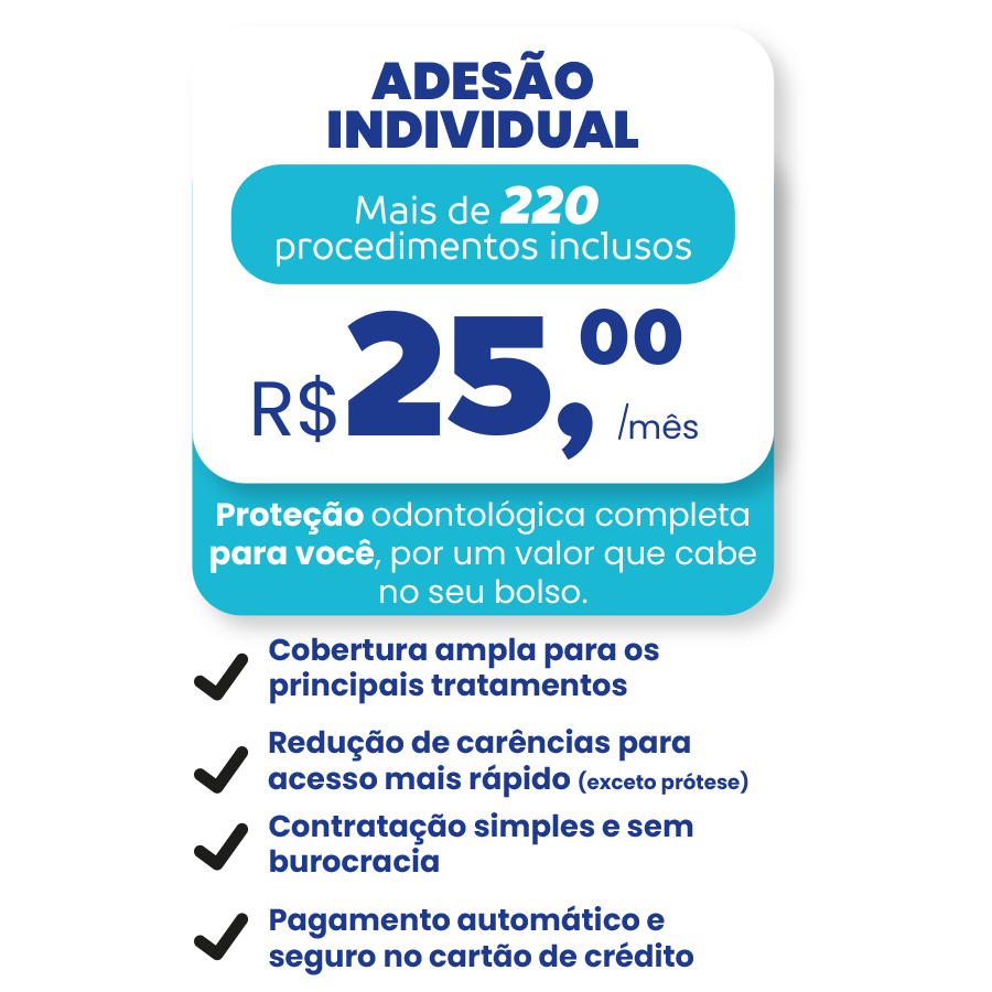 Você pode continuar cuidando do seu sorriso pagando o que já estava acostumado e sem perder a rede credenciada. Mantemos as condições especiais para que sua saúde bucal não sofra interrupções.